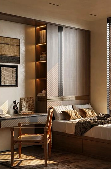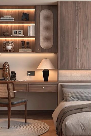 Our collaborative process seamlessly translates your ideas into reality. We start by discussing your needs and measuring your space. Following this, we create clear design drafts for your review and revision. After your final approval, our craftsmen build your bedroom cabinet with expert care. Finally, we conduct strict quality checks and handle professional installation.