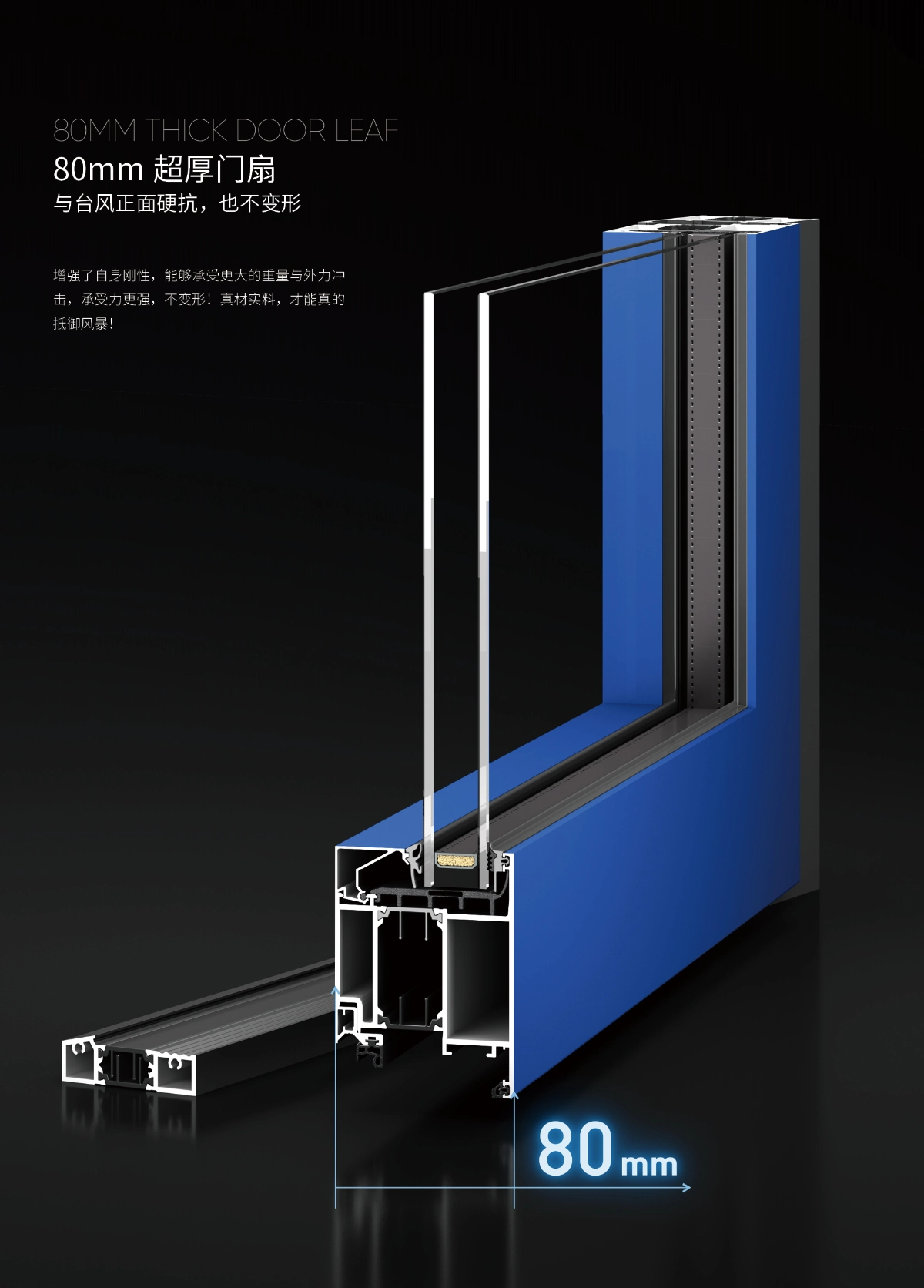 The foundation of this performance is an exceptionally robust structure. The door features an 80mm thick door leaf. This impressive thickness significantly enhances the door’s rigidity and overall strength. Consequently, it can withstand substantial weight and direct impact. Ultimately, this means the door resists deformation, even under extreme conditions like typhoons, ensuring true storm-grade durability for your home.